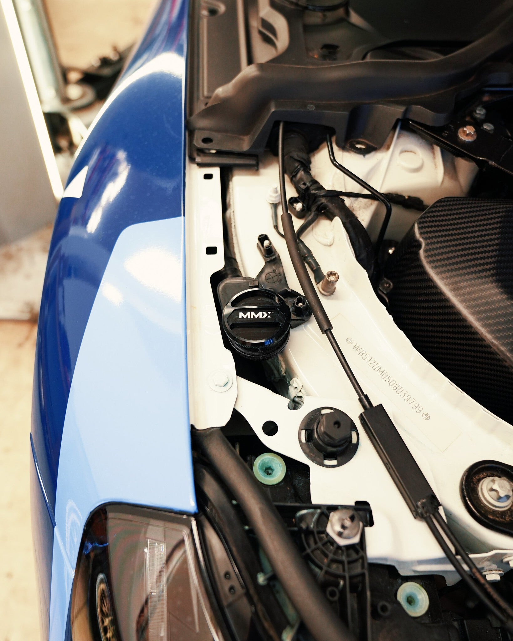Each washer fluid cap is precision-sealed to ensure a perfect, leak-free fit. Unlike simple stick-on covers, this is a full replacement designed to integrate seamlessly. Using the latest CNC 5-axis machining, every cap is meticulously shaped, then hand-polished and gloss-anodised for durability and lasting beauty.